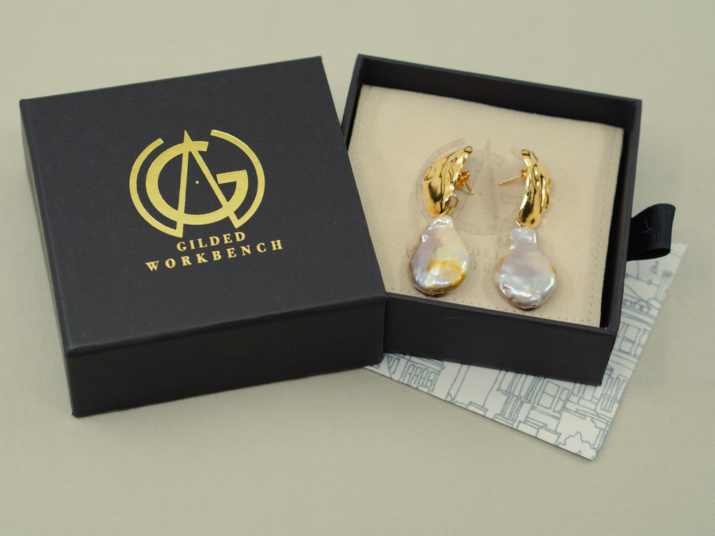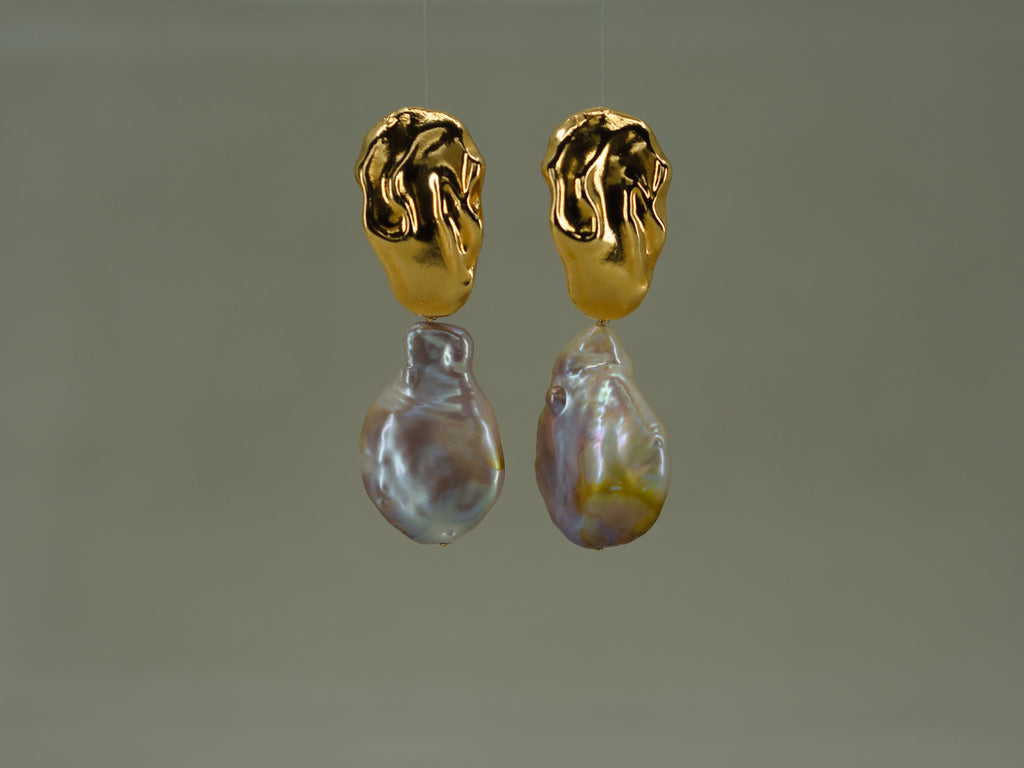 Strong yet delicate. Stunning pearl drop earrings to elevate your style. The textured tops are balanced by the delicate femininity of the iridescent freshwater baroque pearls dangling from them.