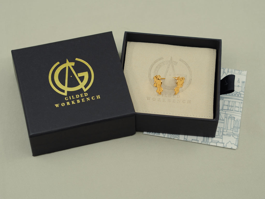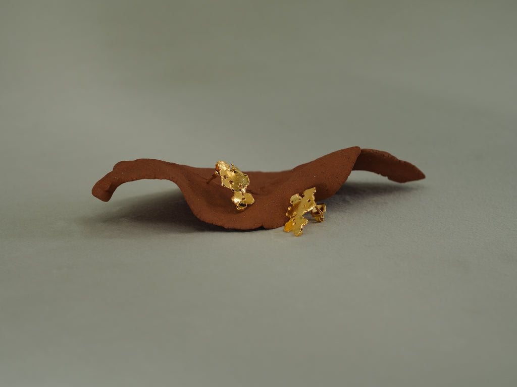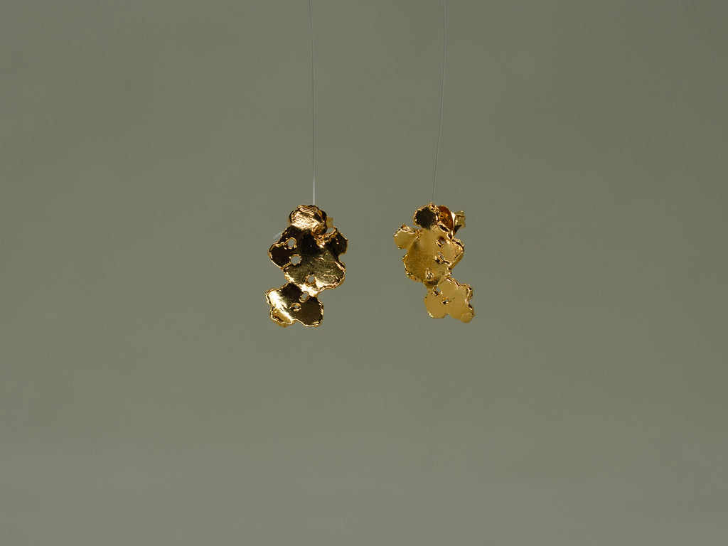 Like a fragment of the star speckled sky, these earrings have an organic shape and undulating texture. Intricately hand carved and cast, let this beauty mesmerize you with its simple form. Pair it alone or with the Speckled Gold Pendant for a modern and sophisticated look.