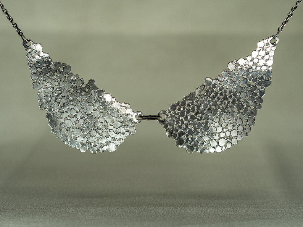 Truly one of a kind, each necklace is individually hand-carved and cast in sterling silver. With an intricate and undulating texture, the piece is oxidized to achieve a beautiful organic tone that highlights the depth of work. This jewelry is quietly magnetic and all encompassing, just like the vast galaxies that inspired its creation.